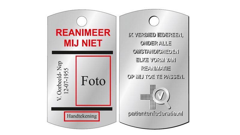 De bekendste vorm van een niet-reanimeren wilsverklaring is de niet-reanimeren penning. Dit is een draagbare wilsverklaring waarop staat dat u iedereen verbiedt onder alle omstandigheden elke vorm van reanimatie op u toe te passen.